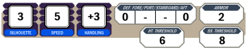 Weapons: (All these weapons use personal scale, not planetary scale) Grenade Launcher [Fire Arc forward, Damage 8, Critical N/A, Range: Medium, Disorient 3, Stun Damage, Blast 8], Steam Jets [Fire Arc left or right, Damage 8, Critical 4, Range: Short, Stun Damage, Burn 3, Blast 8], Stun Panels [Fire Arc all, Damage 6, Critical 3, Range: Engaged, Stun Damage, Disorient 1, Knockdown]